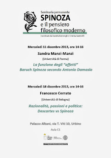 Il Seminario permanente Spinoza e il pensiero filosofico moderno, coordinato da Daniela Bostrenghi e Cristina Santinelli con sede a Urbino organizza i seguenti incontri: