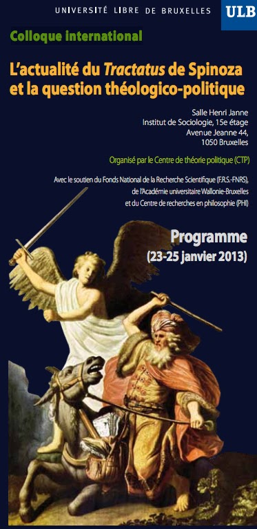 Si svolgerà a Bruxelles da 23 al 25 Gennaio 2013, presso l’istituto di Sociologia, il Simposio internazionale “L’actualité du Tractatus de Spinoza et la question théologico-politique”, con interventi di Balibar e Bove. Per il programma completo: